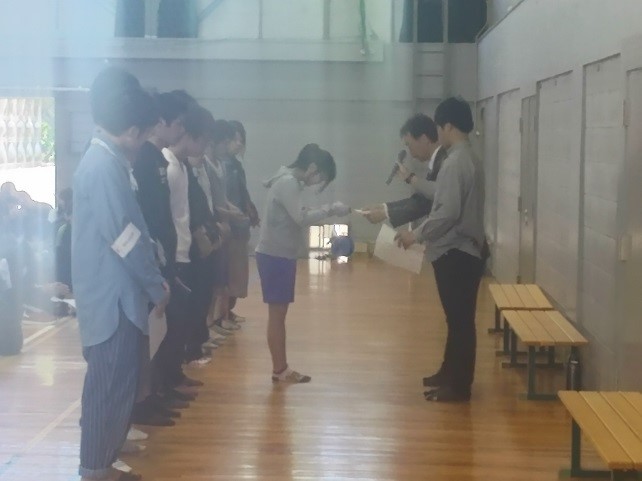 【5/18】学生大会及びクラスマッチを開催しました。 5月18日(水)、学生会主催の学生大会を第1体育館において開催し、本年度予算等の承認、学生会役員への委嘱状交付を行いました。 大会後、学内クラスマッチを開催し、クラス対抗で競い合いました。当日は晴天となり、心地よい天候の中、チームプレーを通して、クラス間の絆を深め、他学年とも友好的な親睦を図ることができました。 ○開催種目 障害走・玉入れ・五人六脚・綱引き・部活動対抗リレー・大富豪 等 学生会役員への委嘱状交付 クラスマッチ・綱引きの様子