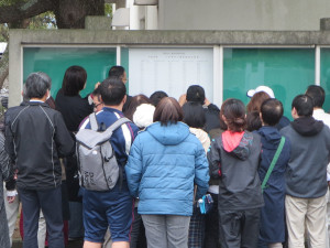 【2/20】令和2年度学力による入学者選抜検査の合格発表を行いました。 令和2年2月20日(木)、令和2年度学力による入学者選抜検査の合格発表を行いました。 午前10時に受検番号が張り出されると、発表を待っていた受検者の保護者や中学校の先生が掲示板の前に駆け寄り、番号を確認していました。 なお、入学式は4月6日(月)に実施します。