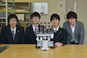 河野さんは、「革新的なロボットを造るということが今回のテーマだったので、話した言葉を手話で表現させるロボットを造ろうと思いつきました。完成までの道のりは、とても大変なことが多々ありましたが、メンバーの得意分野を駆使し、先生の助力もあり、なんとか無事完成させることができました。今回コンテストに参加し学んだことは、これからの学業やものづくりに活かせられるものと思います。今後も諦めることなく、チャレンジし続けていきたいと考えています。」と受賞の喜びを述べました。また、指導にあたった田中助教は、「最近受け身の学生が多い中、このように“ものづくりに対して前のめりな学生”に巡りあえたこと、また忙しい中コンテストに応募してくれたことに感謝しています。今後も彼らがこのような姿勢で勉学に向き合ってくれることを期待するとともに、私自身もこのような学生を育成できるよう全力を尽くします。」と感想と今後の抱負を述べました。