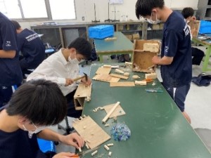 令和3年9月28日(火)、機械工学科2年生が、「ロボティクス基礎演習」の授業で製作した特別支援学校向けの「教材」を使って、愛媛県立新居浜特別支援学校川西分校の小学部児童たちと交流会を行いました。