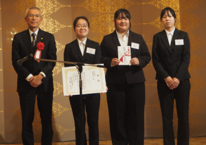 第21回(2023年度)のCVG四国大会の最終審査会が令和5年12月4日(月)リーガホテルゼスト高松にて開催されました。多く応募のうち書類審査を通過した8つのグループ(大学院2件、大学3件、高専3件)のプレゼンテーションが行われ、本校・科学研究会の生物応用化学科5年 長尾 祐希 さん、松田 りさ さん、廣瀬 心愛 さんのグループが「部屋暖房とアレルギー物質除去を同時に実現」というプランで『特別賞・新来島どっく賞』を受賞しました。