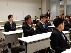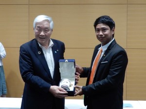 表敬訪問では、KOSEN-KMITLの学生を代表してWorraphad Rungsrirattanawongさんが「機械工作などの実習と、学生との交流や日本文化を学びたい。」と日本語で挨拶を行い、石川市長からは、「研修を通じて新居浜での充実した時間を過ごしてください。」と歓迎の言葉をいただきました。その後、新居浜に来て美味しかった食べ物を答えたり、おすすめの観光地を質問したりと、終始和やかに市長との懇談を楽しみました。