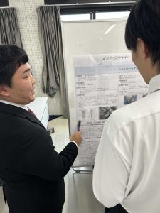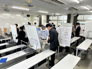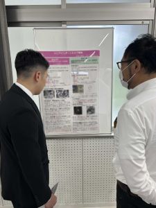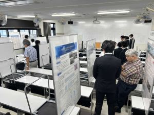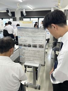 夏季休業中にシニア・インターンシップに参加した専攻科1年生が、企業や大学院など各派遣先での実習について、学内限定にてポスターセッション形式で発表を行いました。今年度26名全員がインターンシップに参加し、複数の企業を体験した学生が半数近くいました。