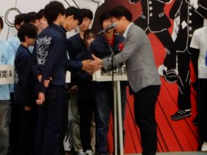 本校の両チームとも残念ながら決勝トーナメント進出を果たすことはできませんでしたが、Aチーム(ロボット名:壱笑)は、「エキシビションでも素晴らしいパフォーマンスをみせていただきました。さらなる積み上げへの可能性もアピールしてくれました。」と株式会社田中貴金属グループから特別賞が贈られました。また、Bチーム(ロボット名:技術凱旋)は、「シリコン製の野菜入れを活用した吸盤のアイデアが光っていました。」とセメダイン株式会社から特別賞が贈られました。