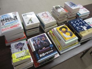 今回は6名の学生と教職員4名が参加し、学習に必要な専門書をはじめ、小説、趣味、実用など様々なジャンルの本を熱心に探索し、86冊を選びました。今回選んだ本は、11月中にブックハンティングコーナーに配架する予定です。