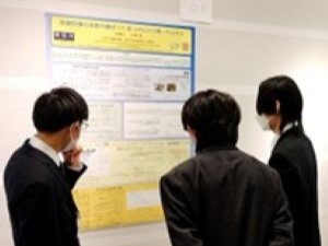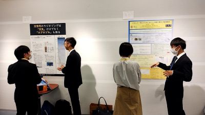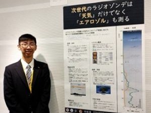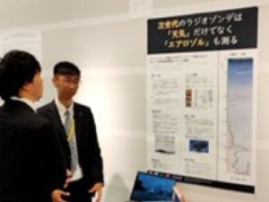 本校からは、電気情報工学科5年の菅 勇介 さんが「エネルギー準位の分布に基づく有機半導体の電荷輸送」、マナカンチクル・シリラート さんが「エアロゾルセンサ搭載の次世代ラジオゾンデ実現に向けた低コスト気球搭載型観測システムの開発」というタイトルで、ポスター発表を行いました。異分野の研究でありながら多くの参加者の関心を集め、聴衆が途切れることなく、活発な議論が続きました。