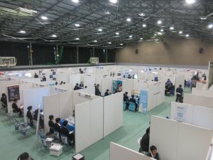 この企業セミナーは、学生が様々な業界について研究し、自らのキャリアについて考える機会を提供することを狙いとして開催したもので、県内外から155社の企業等にご参加いただきました。