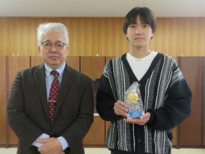 この賞は、同協会から陸上競技の全国大会で8位以上の成績を収めた選手へ贈られるもので、令和6年9月に越智さんが出場した「第59回全国高等専門学校体育大会陸上競技」の男子5000mにおいて5位に入賞したことを受け、この度受賞したものです。越智さんは同大会で他にも男子3000m障害で決勝に進出しています。