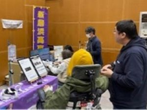 令和8年2月21日(土)、本校も参加している「愛媛県支援機器つながる連絡会」が愛媛県内ではじめて障がい者対象の支援機器展示会をテクノプラザ愛媛(松山市)で開催し、本校学生がAT特別課程で開発した装置や、本校OBや企業と連携して作製した装置などを展示・紹介しました。