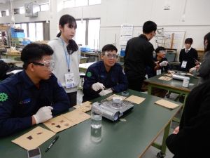 期間中は、本校チューター学生講師による実習、新居浜市内企業の見学、松山城やマイントピア別子などの史跡見学などを行いました。実習は、インドネシアと本校の学生がPBAL(プロジェクト型アクティブラーニング)により実施し、銅合金の作製や金属の加工性について実技を交え、互いに英語でコミュニケーションを取りながら学びました。インドネシアの学生はもちろん、本校チューター学生にとっても、貴重な経験となりました。
