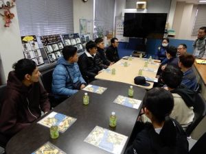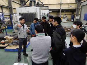 また企業見学では、「えひめが誇るスゴ技企業」「新居浜ものづくりブランド認定企業」でもある、株式会社愛新鉄工所と萩尾機械工業株式会社(ともに新居浜市)の2社を訪問し、精密機器等のものづくり現場や環境に配慮した取組などを見学しました。学生からは多くの質問があり、積極的に学ぶ姿勢が見られたほか、実際に新居浜で働くインドネシア・ベトナム・中国の外国人の方との交流機会もあり、より身近に感じられたようです。