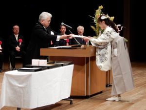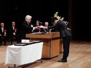 卒業証書、専攻科修了証書、特別課程修了証の授与に続き、新居浜市長賞・新居浜商工会議所会頭賞等の表彰がありました。