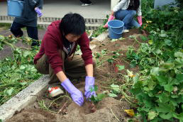 10月22日(水)、本校尚友会館前に作られた畑に植えられた秋の味覚・さつまいもを収穫しました。