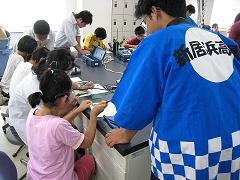 この催しは,理工系に興味のある小・中学生に夏休みを利用して「科学の不思議」や「ものづくりの楽しさ」を体験してもらうために、平成17年度から開催しており、今回で4回目となりました。「空気の流れで遊んでみよう!」「電子ピアノをおひとついかが?」「古代のロマン!青銅鏡!!」の3講座に,小・中学生91名、保護者26名の参加がありました。