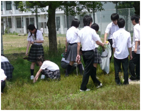 当日は、太陽が降り注ぐとても暑い日でしたが、学生達は元気よく、清掃していました。