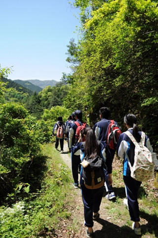 当日は快晴でまさに登山日和、頂上(銅山越)からは新居浜市街だけでなく、はるか瀬戸内の島影まで見渡すことができました。途中、険しい登り坂もありましたが、学生たちはお互いを気遣いながら、全員しっかりと歩きました。